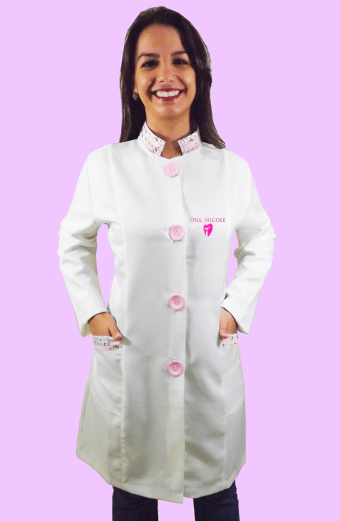 Qualquer modelo de jaleco pode ser personalizado, basta que você selecione o modelo desejado, escolhendo cor e tamanho do jaleco e acrescente esta parsonalização ao pedido antes de efetuar a compra.